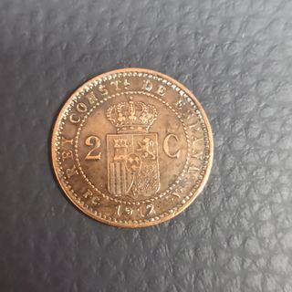 Moneda de cobre de 2 Céntimos de Peseta del año 1912 PC. V. La tirada fue de 5.216.438 de ejemplares. Calidad EBC +, escasas en tan buen estado. Más numismática en mi perfil. #AlfonsoXIII #Pesetas #Numismática