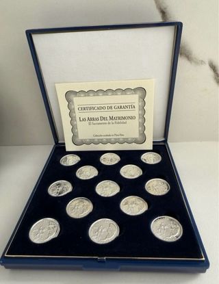 Set de arras para matrimonio, fabricadas en plata pura 999. Incluye certificado de garantía. - Arras del Matrimonio: El Sacramento de la Fidelidad. - Colección acuñada en Plata Fina.