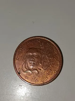 Moneda de 2 céntimos de Euro conmemorativa del año 2014. - Diseño con figura y estrellas. - Acabado en cobre.