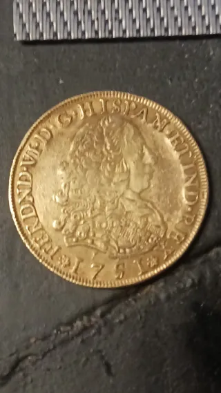 Moneda de 8 Escudos Fernando VI conocida como Pelucona, del año 1751 Perú LM