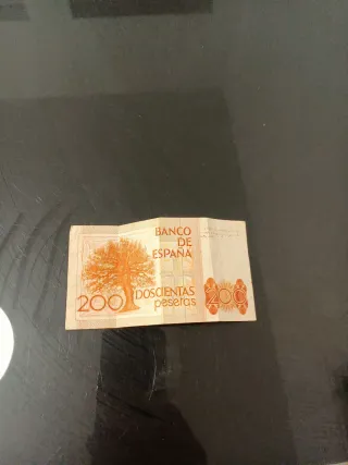 Billete de 200 pesetas del Banco de España. Escucho ofertas. - Diseño con árbol y valor 200. - Texto DOSCIENTAS pesetas y BANCO DE ESPAÑA.