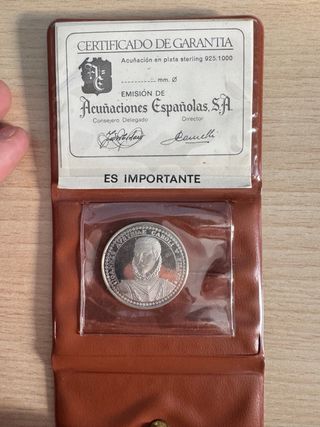 Certificado de garantía para moneda de acuñación en plata fina 1000/1000. - Diámetro: 28 mm. - Emisión de Acuñaciones Españolas, S.A.