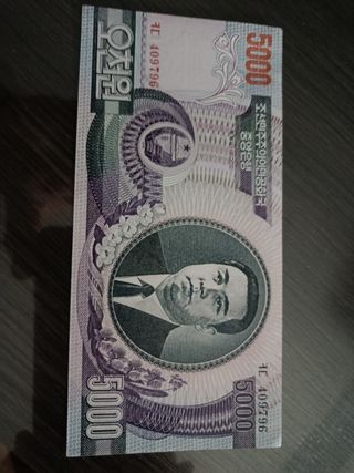 Billete de 5000 pesos norcoreanos. - Diseño con retrato. - Serie 409796. Entrega en mano, no envíos