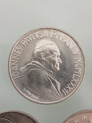 VATICANO LOTE DE CINCO MONEDAS ANTIGUAS DE PLATA SIN CIRCULAR DOS DE 1000 LIRAS Y TRES DE 500 LIRAS SI INTERESA ALGUNA EN PARTICULAR TAMBIÉN LAS VENDO SUELTAS