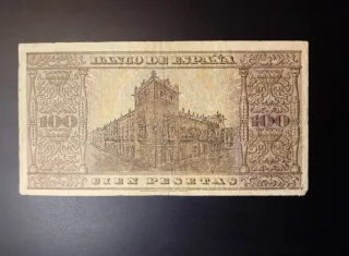 Billete de 100 pesetas del Banco de España, emitido en Madrid el 10 de julio de 1925. Presenta un retrato de Felipe y una vista del Palacio Real. Dos billetes con un precio imbatible. - Denominación: 100 Pesetas - Fecha de emisión: 10 de julio de 1925 - Lugar de emisión: Madrid - Emisor: Banco de España - Diseño: Retrato de Felipe y Palacio Real