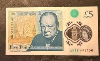 Billete de 5 libras esterlinas del Banco de Inglaterra, con la imagen de la Reina Isabel II. - Diseño frontal con retrato de la Reina Isabel II. - Reverso con imagen del Big Ben. - Valor nominal de 5 Pounds.