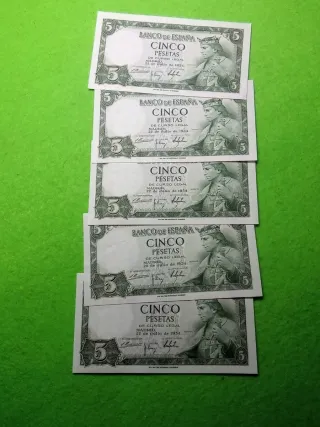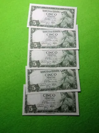 5 Billetes 5 Pesetas 1954 España excelente estado