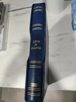 Álbum para coleccionar billetes. Lleva 17 láminas para meter billetes. llevara 12 billetes de regalo sorpresa. - Cubierta de color azul. - Diseño con detalles dorados. - Incluye el logo BBB.