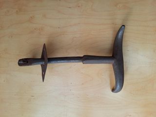 Pieza de metal antigua, posiblemente una bisagra o herraje. Medidas 16,5 cm largo - Fabricada en metal con acabado oxidado. - Presenta un diseño con punta de lanza. - Cuenta con tres orificios para su fijación.