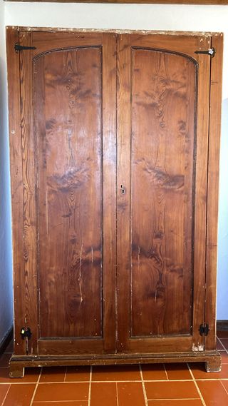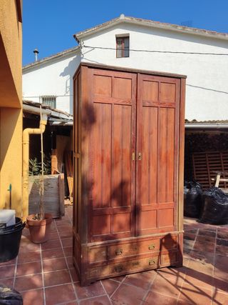 URGENTE Vendo armario de pino melis antiguo. Con dos cajones. Las bisagras de las puertas quedan escondidas. Tengo una llave. Tiene un poco de carcoma y falta algún listón embellecedor. No tiene los estantes. Somos una carpintería, llegando a un acuerdo se podría hacer los estantes y tratar la carcoma. FUSTERIA ALTAFULLA
