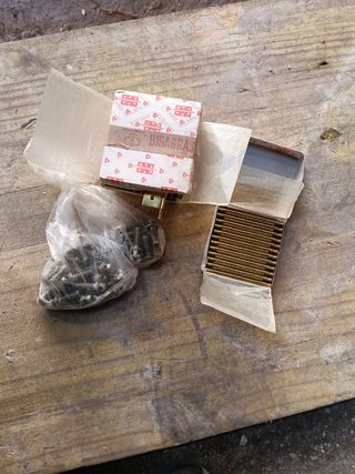 5 cajas de 24 unidades cada una. Bisagras latón pulidas, 5nudos. 60x40m/m. Con la compra se regala tornillería de antiguos armarios(última foto)