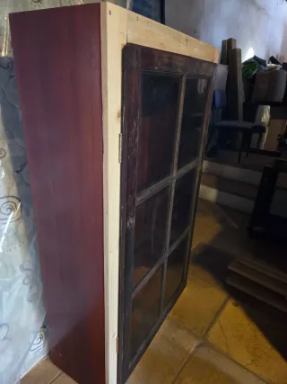 Mueble/vitrina artesanal hecha a mano, realizada a partir de una puerta antigua acristalada de madera, integrada en una estructura de madera maciza construida posteriormente. Cuenta con puerta frontal con cuarterones y cristal, ideal para usar como vitrina, armario auxiliar, mueble expositor o para proyectos de restauración y personalización. Estética rústica. Fabricación: artesanal (hecho a mano) Material: madera maciza + cristal Puerta: original antigua reutilizada Apertura: lateral con bisagras Precio negociable, no hago envios. Pago en efectivo.