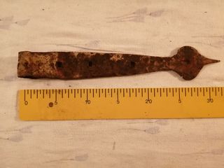 Preciosa bisagra antigua de hierro forjado. Ideal para decoración o restauración. - Mide aproximadamente 25 cm. - Presenta un bonito diseño con forma de punta de lanza. - Tiene un aspecto rústico y envejecido. Más hierros antiguos en mi perfil.