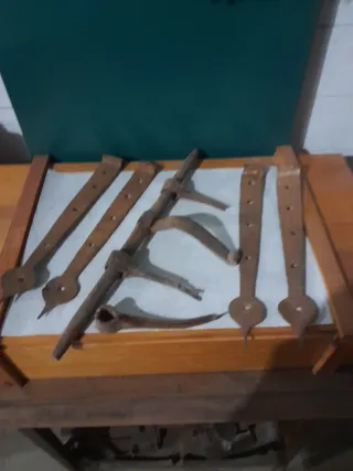 Conjunto de bisagras antiguas de hierro forjado 4 bisagras más grandes 100€ 4 bisagras más pequeñas 80€