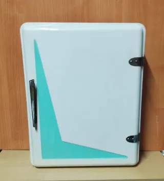 (Puedo enviarlo) Este botiquín antiguo de gran popularidad en principios de los años 70 añade un toque retro a cualquier espacio. Su diseño vintage con un detalle geométrico en color turquesa embutido en la chapa.. bisagras y tirador metálicos niquelado. Preparado para ser colgado en la pared. Altura 47 CT ancho 37 CT Fondo 14 CT Se puede usar como botiquín o armarito de baño. Bien conservado no tiene nada roto . muestras del paso del tiempo, tiene algunos retoques de pintura blanca. Muy buscado por colecionistas . - Fabricado en metal , hierro - Color blanco con detalle embutido en color turquesa.