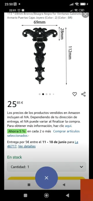 Bisagra antigua para muebles Valencia