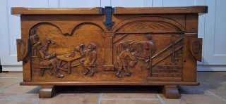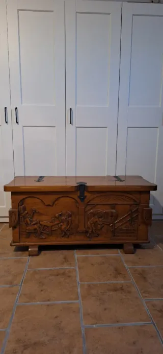 Arcón / baúl de madera maciza tallado