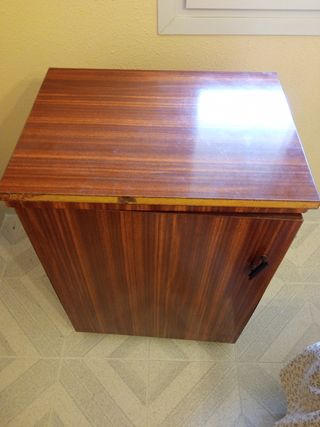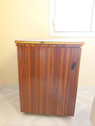 Mueble antiguo para maquina de coser. Pie de hierro forjado en perfecto estado Alfa. Mueble tiene ruedas y se desplaza fácilmente. Hueco para maquina 42cm. largo 18cm. de ancho entre centro de bisagras 24cm.Solo recogida en persona.