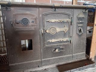 solo la fachada de una cocina de leña antigua original hergon n°10 solo se puede aprovechar las puertas, menos la mediana, tiene una bisagra rota.