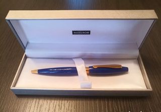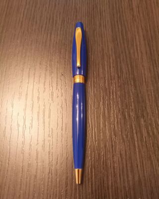 NO SE ACEPTAN OFERTAS. ESTAS CONLLEVAN BLOQUEO. SOLO TRANSFERENCIA O BIZUM. ENVIO INCLUIDO. Antiguo Juego Boligrafo y Roller/Rotulador INOXCROM CORINTHIAN. Años 80-90. Fabricado en España. Cuerpo y capuchón en "Resina noble" compuesto de (polimetil-metacrilato), un acrílico muy resistente a arañazos y golpes. Color azul imperial. Modelos facetado a 12 caras. La joya de cierre superior del capuchon es un globo del mundo grabado. El clip, los anillos y el cabezal de punta son de oro 23,9k y de 6 micras de grosor. Grabado en el anillo central: "INOXCROM-Spain-1942". Accionamiento a giro de parte superior. Se entregan con carga.