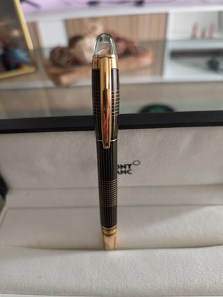 Bolígrafo Montblanc Starwalker con detalles en oro rosa de 22K modelo Rollerball, una excelente joya que dibuja en vez de escribir; presenta en su parte inferior externa desgaste por químico que utilizaron para ver si era oro sólido, pero se puede reparar más o menos unos 420€ pero no es que sea necesario este detalle no influye en su funcionamiento y elegancia vale la pena tenerlo a tan buen precio, para mas modelos consultar Instagram emporiodelasideas. - Diseño con cuerpo de metal. - Clip y adornos en oro rosa.