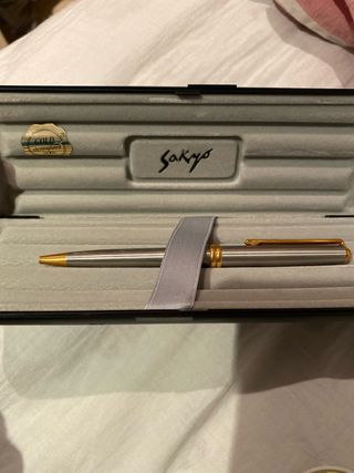Elegante bolígrafo de la marca SAKYO, con un diseño sofisticado. - Bañado en oro de 24 quilates. - Presentado en su estuche original.