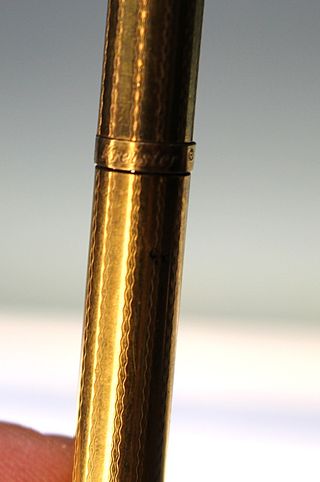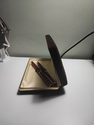 Bonito bolígrafo bañado de oro, no mantiene el estuche pero está nuevo, lleva muchos años en casa pero escribe perfectamente.