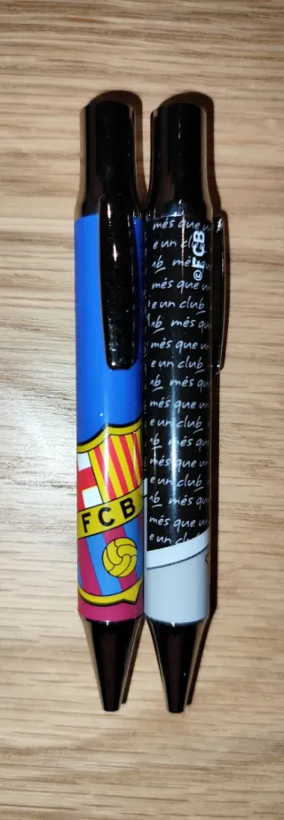 Vendo dos bolígrafos automáticos del FC Barcelona. Son nuevos y vienen en su embalaje original. - Bolígrafos con diseño del FC Barcelona. - Mecanismo automático. - Vienen en blíster.