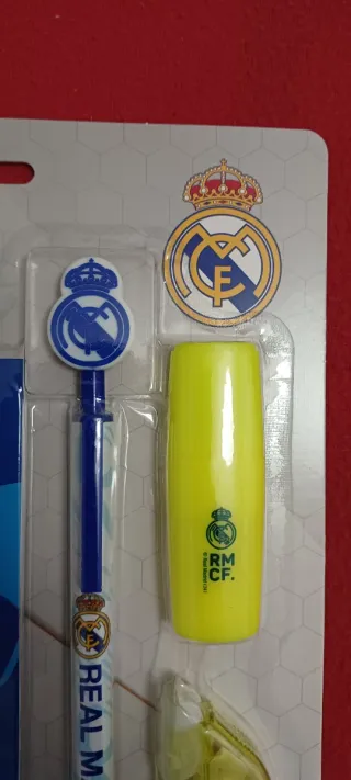 Vendo bolígrafo multifunción de 7 colores y 2 imanes del Real Madrid. Están nuevos, en sus embalajes originales. - Bolígrafo con diseño del Real Madrid. - 2 imanes con escudo del Real Madrid. - Producto oficial.