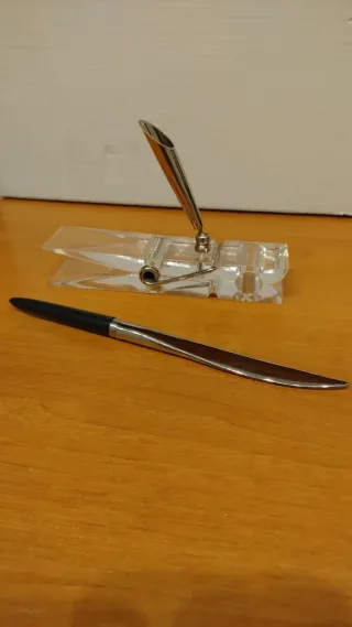 Pinza metacrilato vintage bolígrafo y abrecartas