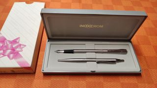 Pluma y bolígrafo Inoxcrom vintage, estuche