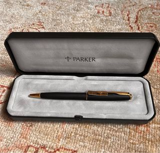 Estuche original Parker que incluye dos piezas clásicas de la marca: • Bolígrafo azul fabricado en UK • Rollerball negro fabricado en USA Un conjunto elegante y con carácter, ideal para quienes valoran la escritura de calidad o para coleccionistas que buscan piezas Parker auténticas. El diseño atemporal con acabados metálicos y el clip en forma de flecha reflejan la esencia de la marca. 📌 Se entregan en su caja original Parker. 📌 Artículos vintage de gran interés tanto para uso como para colección.