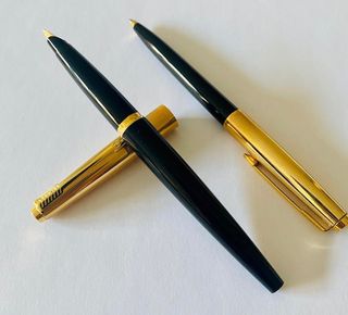 Elegante conjunto de escritura Parker. - Incluye una pluma y un bolígrafo. - Diseño clásico y sofisticado. - Presentado en su caja original.