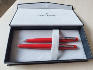 Set de bolígrafos Pierre Cardin, color rojo. Están como nuevos, apenas han sido utilizados. Vienen en su caja. Los cartuchos conservan poca tinta, por lo que conviene cambiarlos. Bolígrafo, pluma estilográfica, tinta, lápiz, portaminas, roller, Pierre Cardin, Montblanc, Parker...