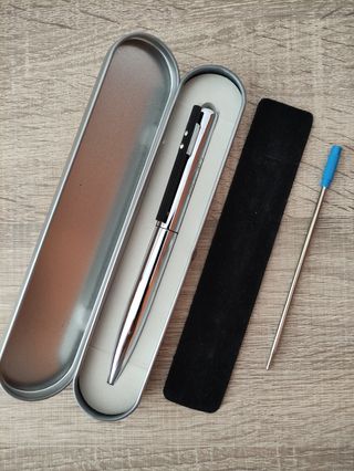 Bolígrafo de metal plateado y negro a estrenar