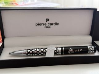 Elegante bolígrafo de la marca Pierre Cardin, con un diseño especial. - Color negro con detalles plateados. - Grabado GEO en el cuerpo del bolígrafo. - Presentado en su caja original.