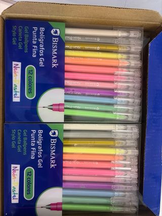 50 unidades - ideal para regalos comunion .Set de 12 bolígrafos de gel Bismark con punta fina y colores variados. Ideales para escribir, dibujar o decorar. - Marca: Bismark - Tipo: Bolígrafo Gel - Punta: Fina - Cantidad: 12 unidades - Colores: Variados (Neón-Pastel)