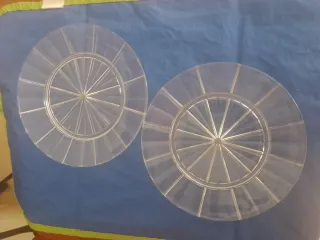 Juego de dos platos con un diseño radial procedente de Malasia. - Material: Vidrio transparente y resistente. - Diseño: Radial con divisiones. (Decoración adorno vajilla mesa)