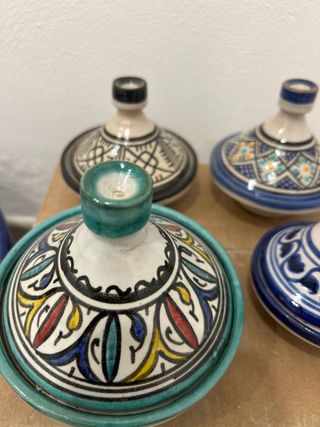 Precioso tajine decorado a mano con motivos tradicionales. - Diseño único y colorido. - Cerámica de alta calidad. - Ideal como pieza decorativa o para servir.