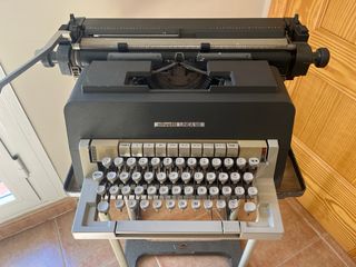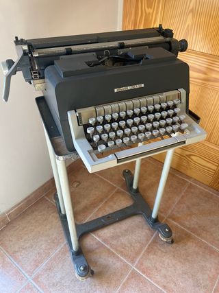 Máquina de escribir Olivetti Lettera 98 en color gris oscuro. Un clásico del diseño italiano. Incluye la mesa/soporte con ruedas - Diseño retro. - Teclado QWERTY. - Sin garantia