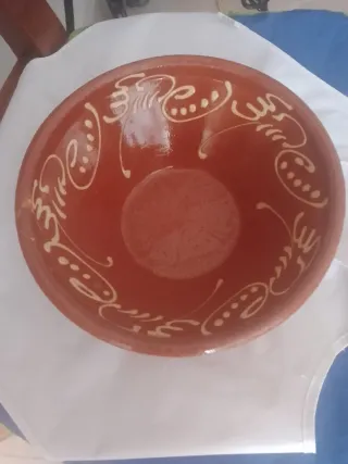 Antiguo cuenco pintado a mano de barro artesanal. Señalado pequeño desperfecto en foto. (alfarería alfarero)