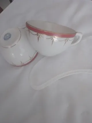 Taza antigua con diseño floral azul, aparece en la serie Ena ( reina victoria Eugenia) de RTVE (en concreto cuando Eugenia de Montijo conjura para casar a Ena con Alfonso XIII). - Diseño floral azul. - Material de cerámica.