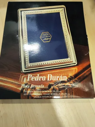 Elegante marco de plata de la marca Pedro Durán, modelo Sorolla. - Medidas exteriores: 29x23 cm. - Medidas interiores: 22x17 cm. - Plata firmada. Caja 5