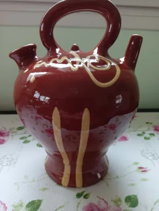 Botijo de cerámica con un diseño rústico y tradicional. - Acabado en tonos marrones y rojizos. - Dos pitorros y un asa. - Pieza decorativa.