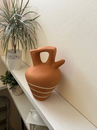 Botija de barro de estilo antiguo. Pieza decorativa con un diseño tradicional. 15x8 cm . - Material: Barro - Color: Terracota