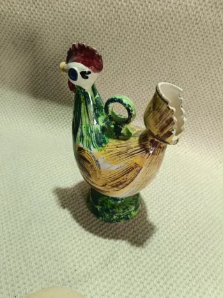 Original botijo con forma de gallo, una pieza decorativa y funcional. - Diseño artesanal en cerámica. - Colores vivos y alegres. - Ideal para coleccionistas o como detalle decorativo.