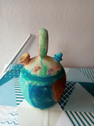 Bonito botijo de ceramica decorado a mano