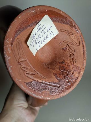 Botijo de cerámica con diseño circular y decorado a mano por Domingo Punter (Teruel). Está en muy buen estado y no es un pieza muy habitual. Único "defecto" es que en la base, le falta un pelin de pintura (ver foto 2). Es Mínimo. Dimensiones: 37cm de alto por 23cm de ancho. - Pieza de cerámica artesanal. - Motivos vegetales en tonos verdes y ocres. - Asa circular en la parte superior. Posibilidad de entregar en Barcelona (Sagrada Familia o Poblenou). Cualquier duda, consultar, siempre contesto los mensajes. Palabras clace: vintage, artesania, cerámica, jarrones, jarros, coleccionismo, rural, figura, decoratico, rústico, autor,