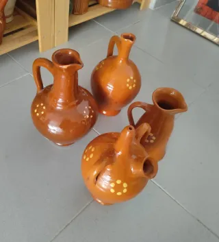 Lote de 6 jarras y botijo de barro