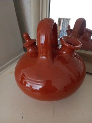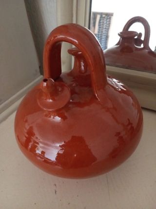 Precioso botijo de barro cocido y esmaltado. Sirve para usar. 25*22